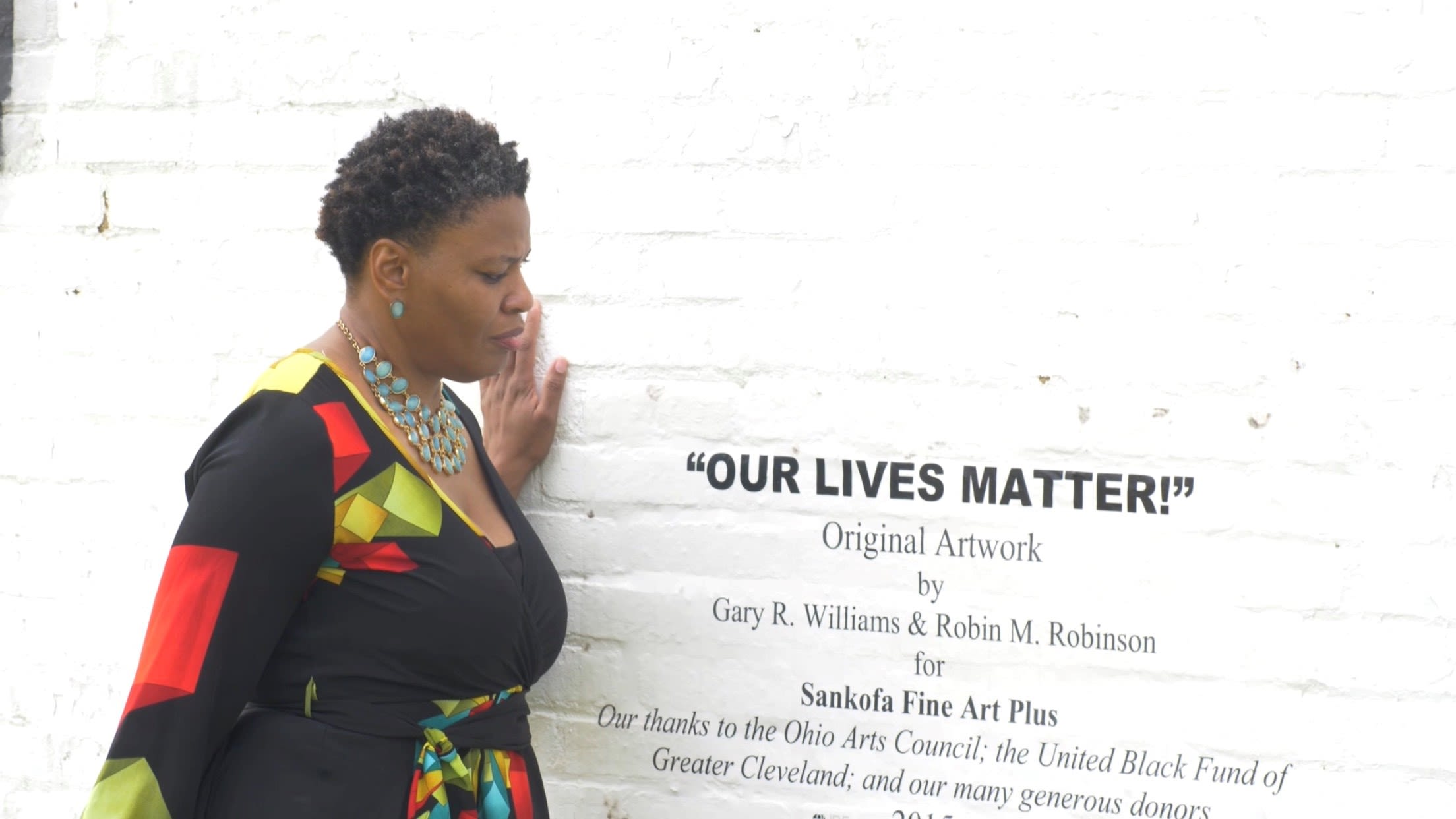 Dionne D. Hunter performs in front of the "Our Lives Matter" mural in Cleveland. [Stephon J. Davis]