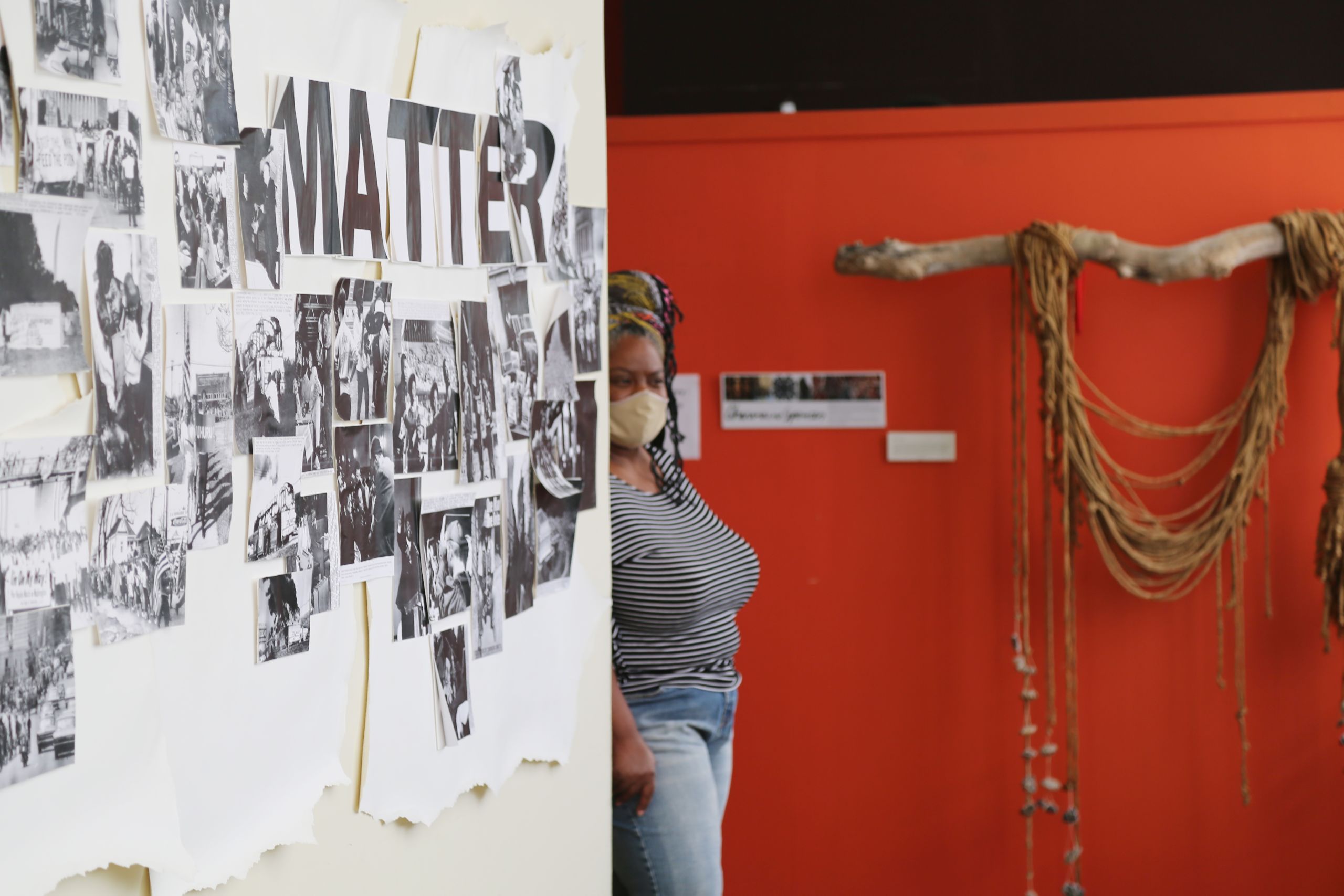 Years later, she looked at a cutout of one of those images on a table in her studio featuring a man looking confident in his stance and expression and said she wants people to see that the safety of all people – not just Black people – is threatened when someone participates in taking a person’s life.