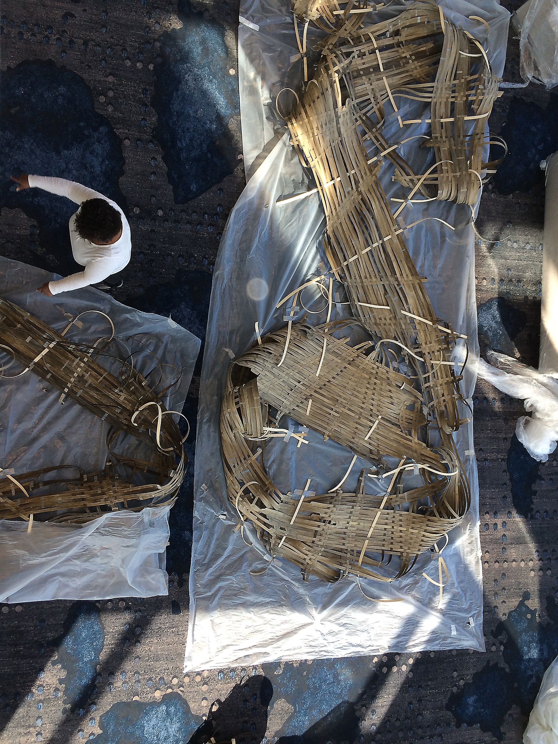 “Harmonic” was constructed of woven reed grass tied together with stainless steel jewelry wire.